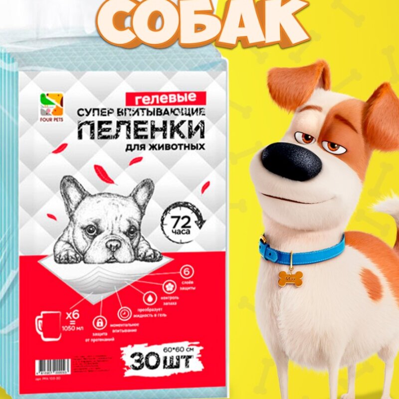Пеленки для собак Four Pets 60х60 см, 30 шт
