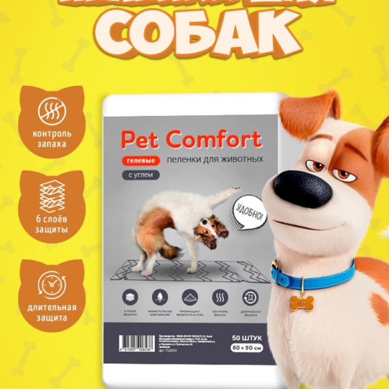 Pet Comfort Пеленки для собак с углем 60х90 см, 50 шт