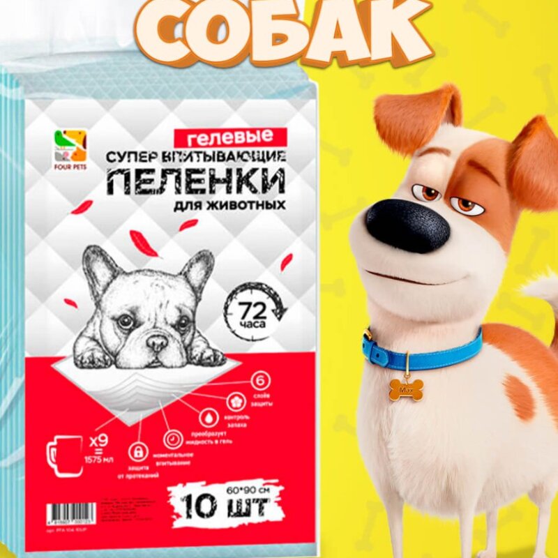 Пеленки для собак Four Pets 60х90 см, 10 шт