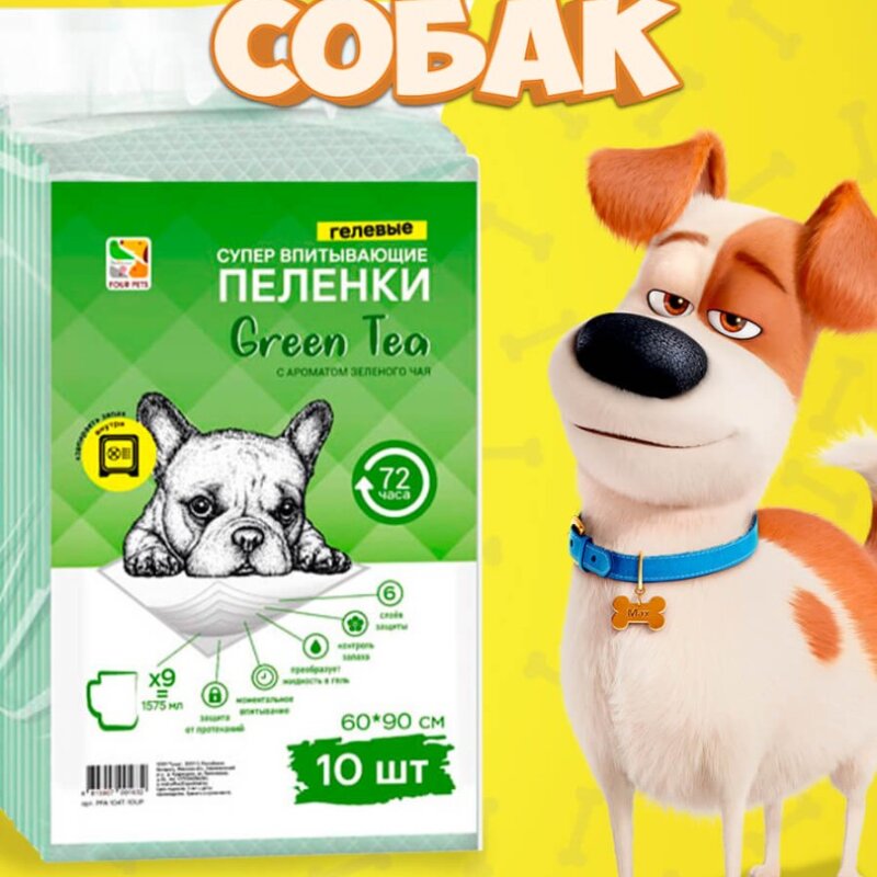 Пеленки для собак Four Pets Green Tea 60х90 см, 10 шт