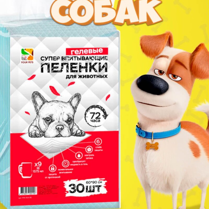 Пеленки для собак Four Pets 60х90 см, 30 шт