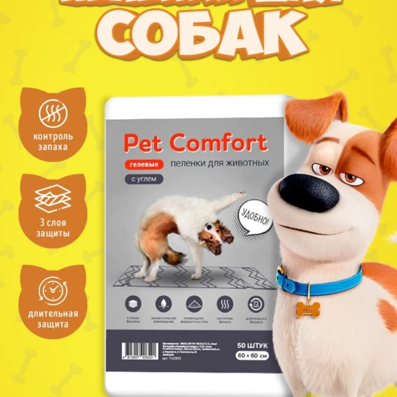 Pet Comfort Пеленки для собак с углем 60х60 см, 50 шт