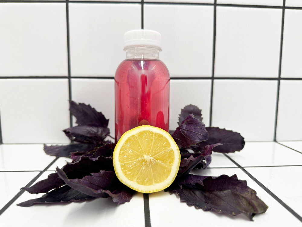 Вода, сахар, лимонный сок, фиолетовый базилик