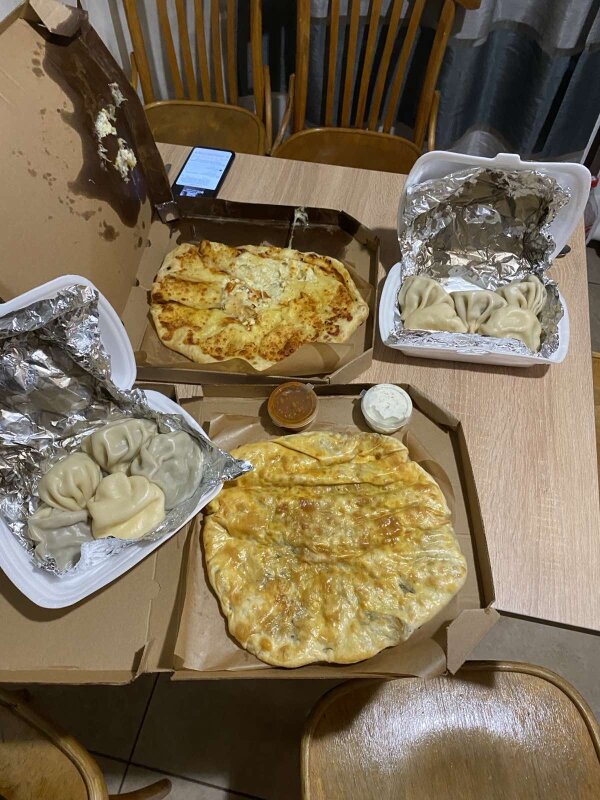 Доставка вовремя . Все очень вкусно. Хинкали не ожидали, что такие большие и вкусные