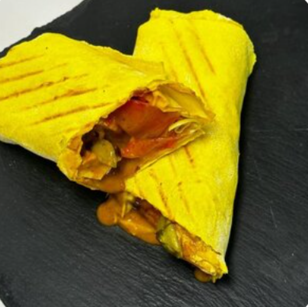 Курица, капуста, помидор, перец «Халапеньо», соус «Острый», соус «Чесночный»