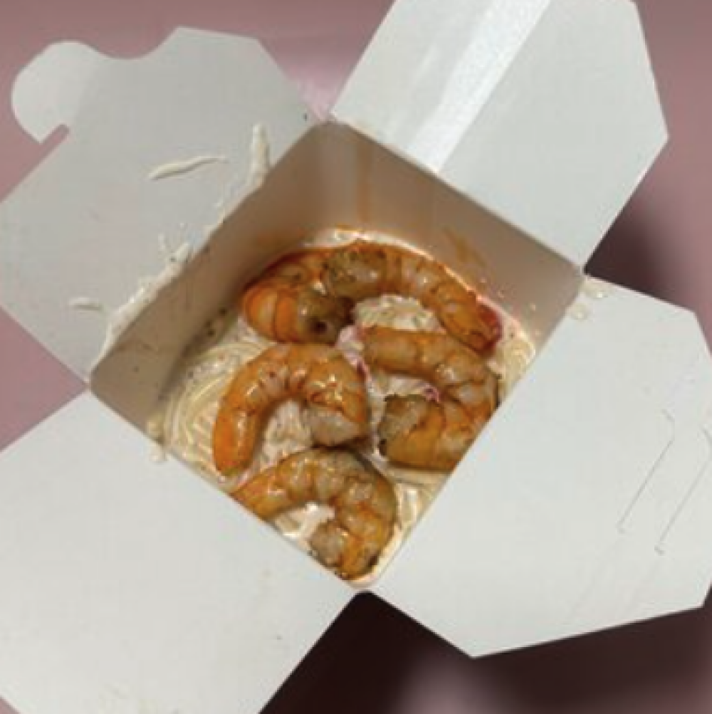 Креветки, ананас, салат «Айсберг», свежий огурец, помидор, соус «Чесночный», соус «Терияки»
