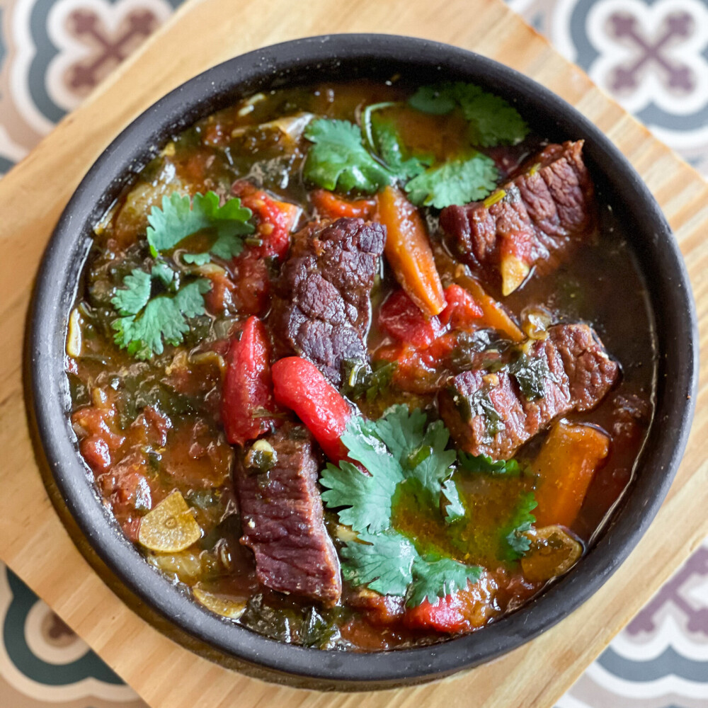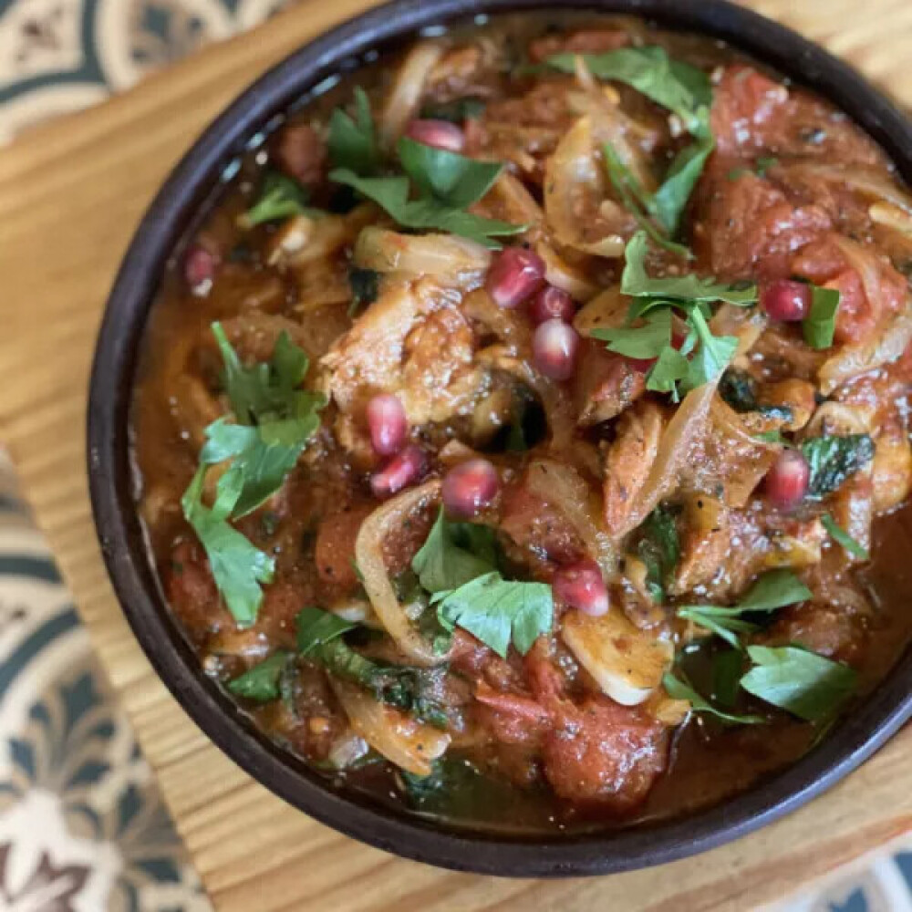 Пряная говядина тушеная в соусе с помидорами и зеленью