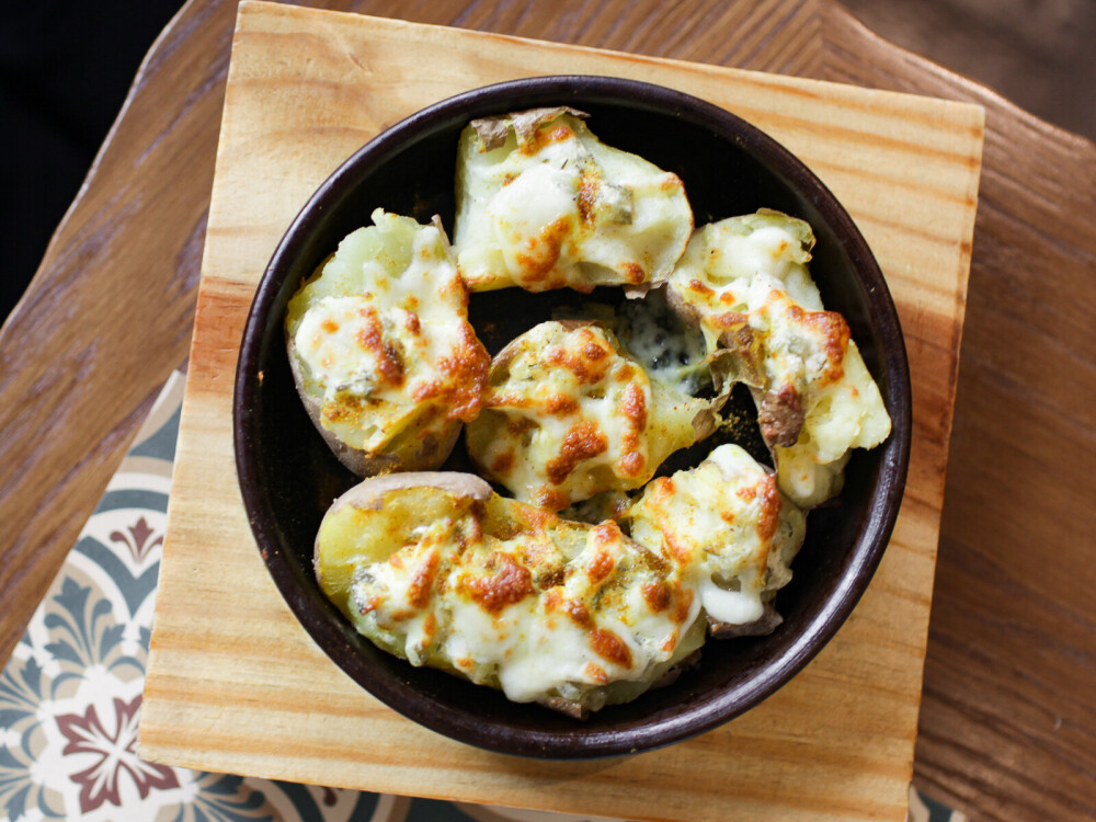 Отварной картофель в мундире запеченный с сыром «Сулугуни»