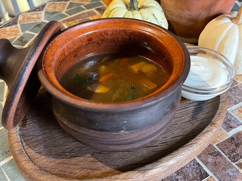 Пряный грибной бульон на основе белых грибов и опят