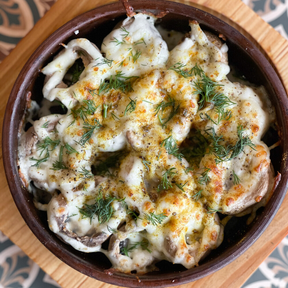 Шампиньоны, запеченные с сулугуни