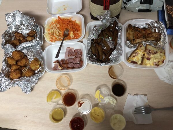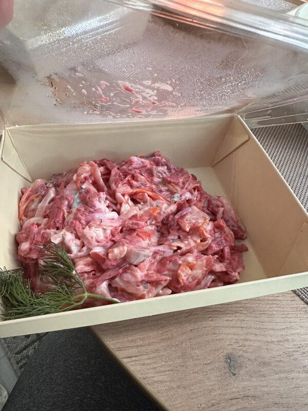 Всегда есть нюансы с едой. Салфеток не положили. Салат растроил