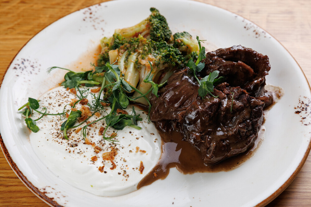 Говяжьи щеки «По-лигурийски» с пикантной броколли