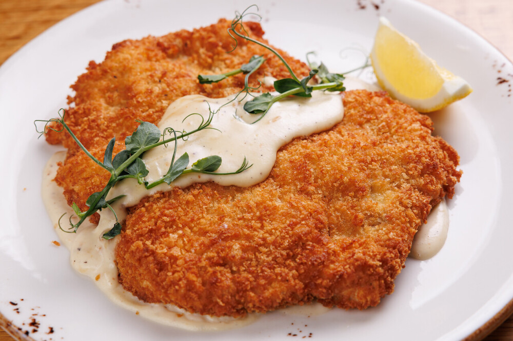 Шницель из свинины с копченым соусом
