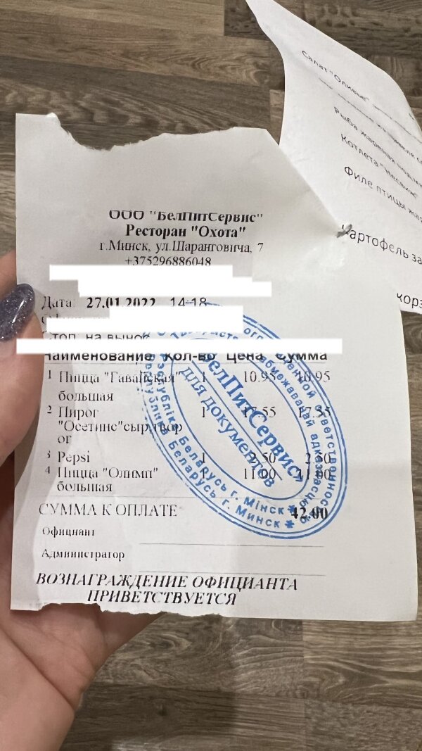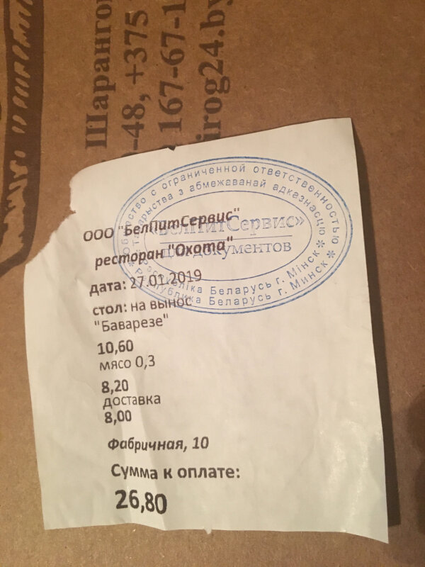 Не вкусно!!!! Посмотрите на фото, это 50% начинки??? Там тесто сплошное которое просто выкинули. Суп заказывали со шпинатом он пересолен его вылили! Блин с творогом никакой, вместо кураги положили чернослив. Не вкусно