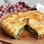Закрытый рыбный пирог из тунца, яйца, риса и зелёного лука