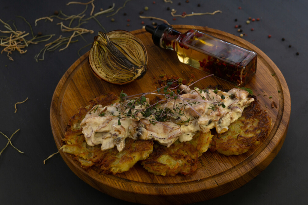 Драники с курицей и грибами