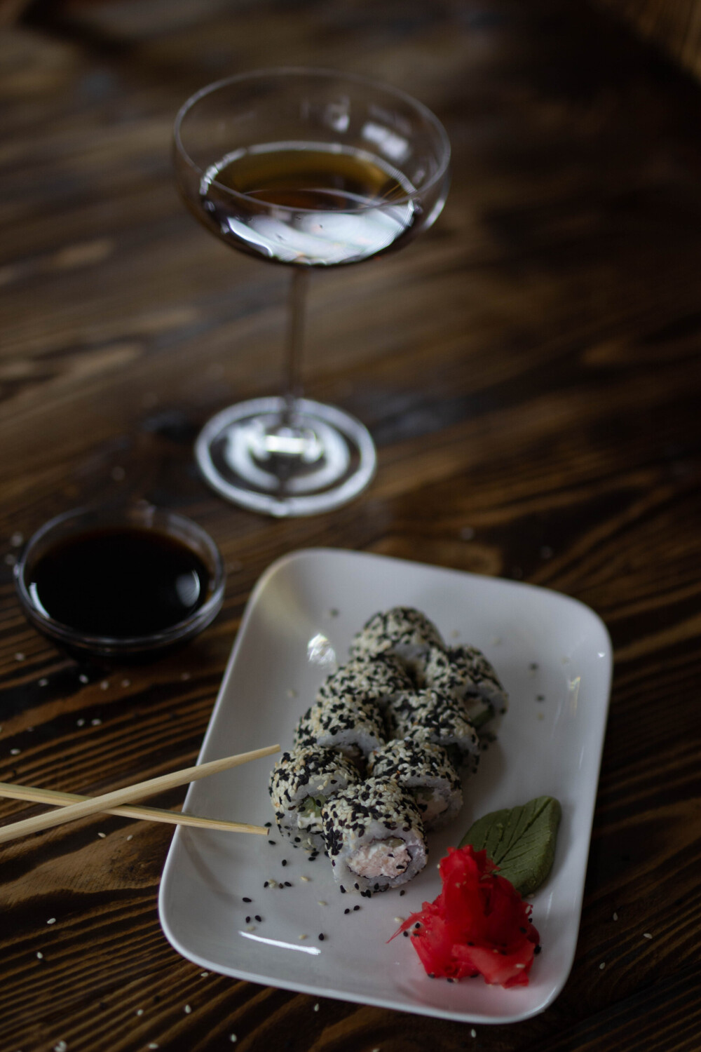 Рис, нори, огурец, лосось, кунжут, соус «Терияки»