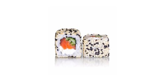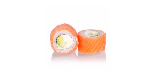 Этап №2: скручивание роллов. На циновку выкладываем половинку листа нори и с отступом от себя в 1,5 — 2 см выкладываем рис. Зайдите за пределы листа нори примерно на 1 см. Переверните получившийся «коврик». Настало время для сыра: аккуратно выкладываем филадельфию на поверхность. Помогая себе циновкой, скручиваем ролл. Получившуюся «начинку» накрываем слайсами лосося по всей длине и прижимаем циновкой.
