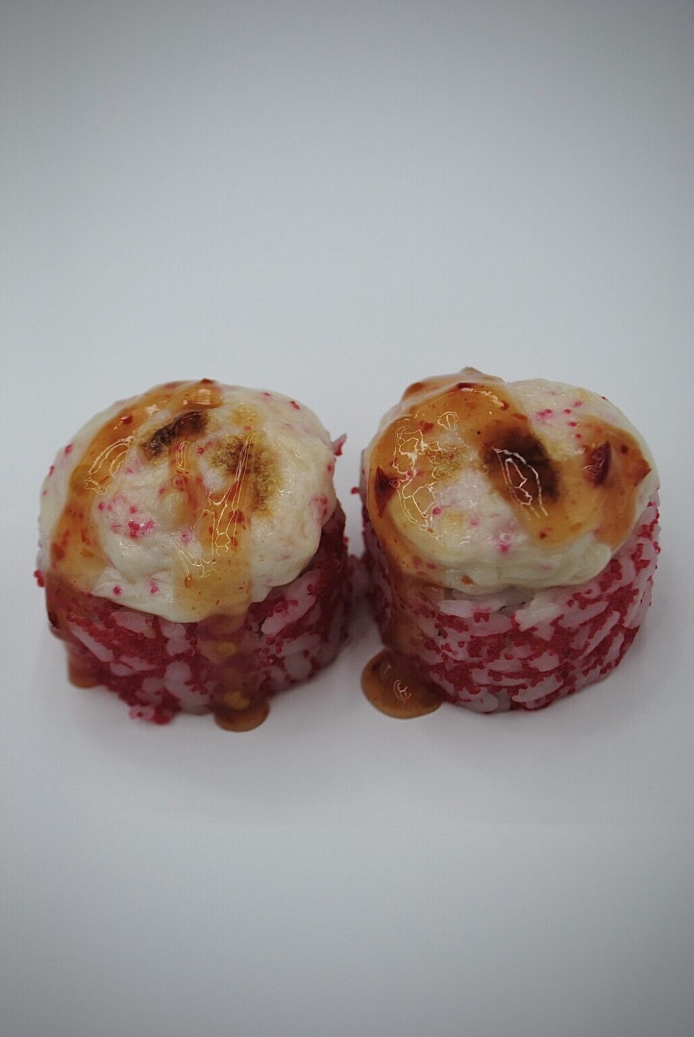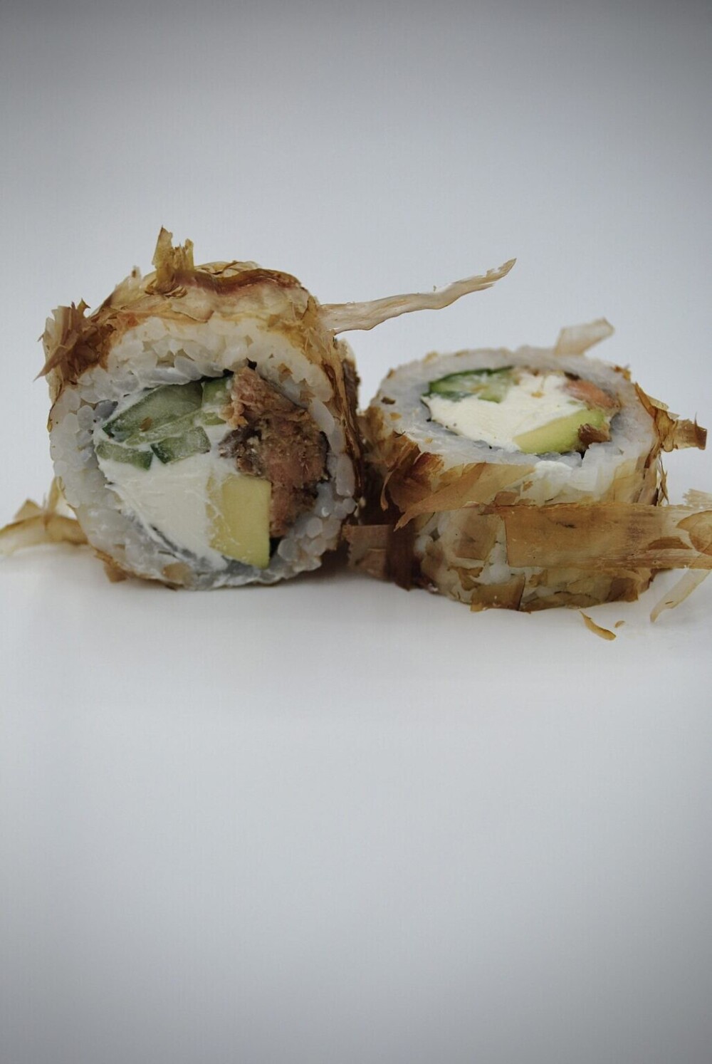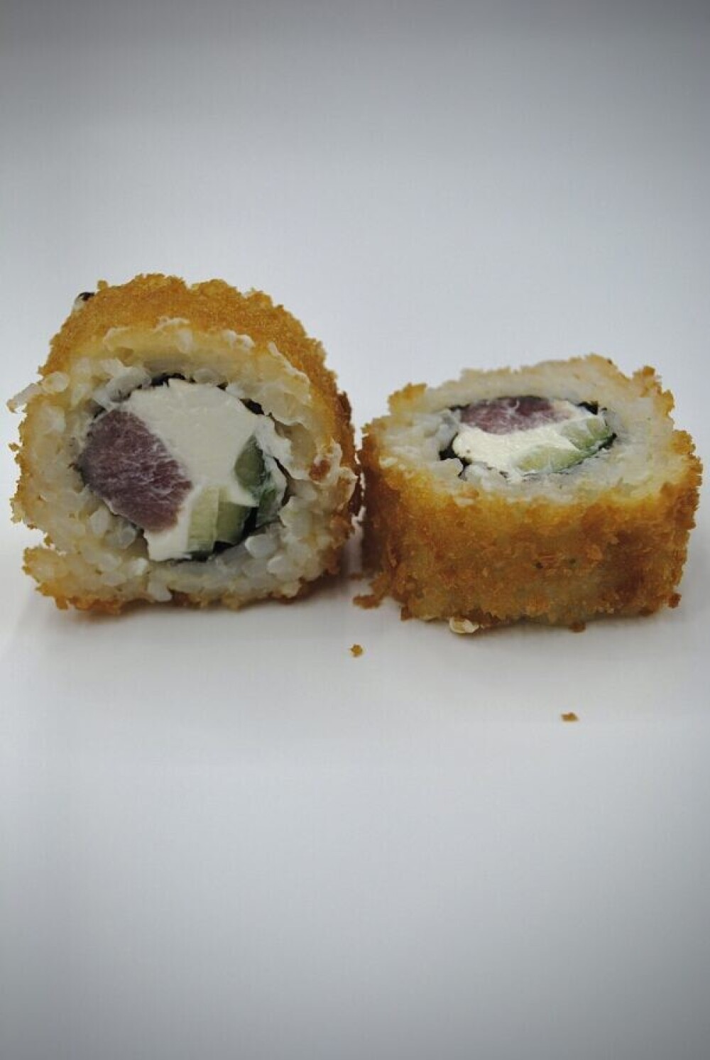 Ролл «Филадельфия фрай» (Творожный сыр, авокадо, огурец свежий, лосось свежий, темпурная смесь) ролл «Калифорния фрай» (Снежный краб, огурец свежий, авокадо, майонез, икра «Тобико», темпурная панировка), Ролл запеченный с креветкой (Сыр творожный, перец сладкий, креветка отварная, сырная шапка, соус «Чили сладкий», икра тобика), Ролл запеченный со свежим лососем (Сыр творожный, икра тобика, огурец свежий, лосось свежий, сырная шапка, соус «Кимчи»)