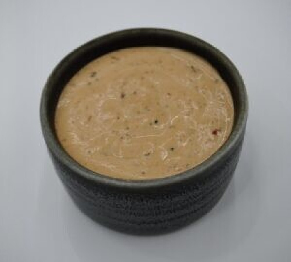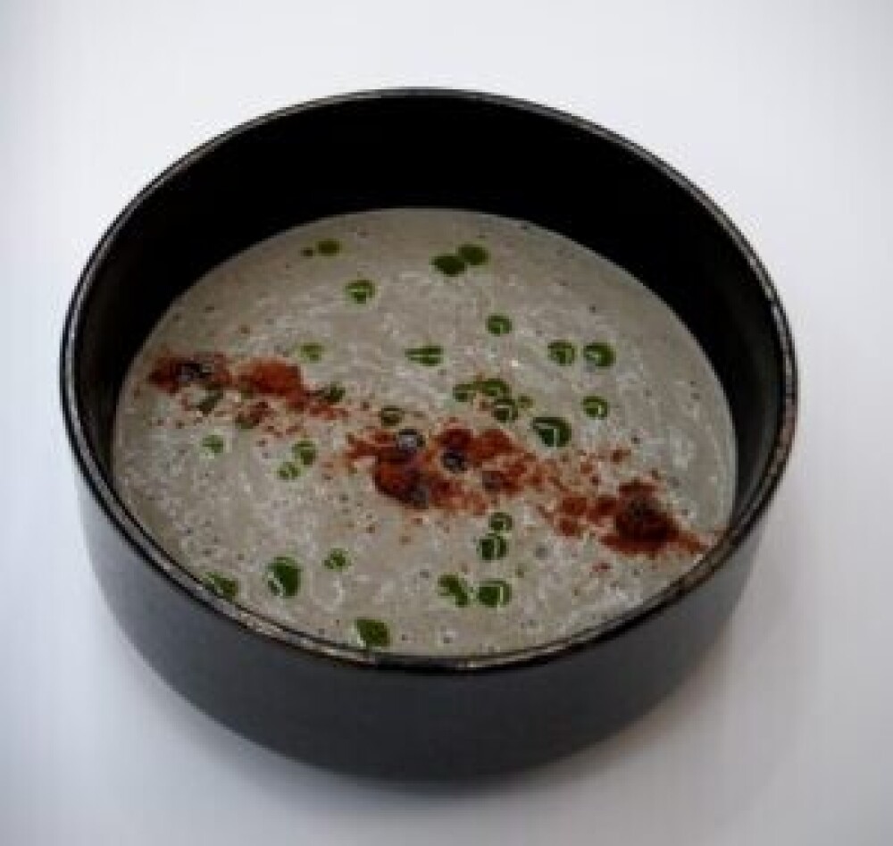 Грибы шампиньоны, сливки, овощной бульон, масло зеленое, паприка, сырная лепешка