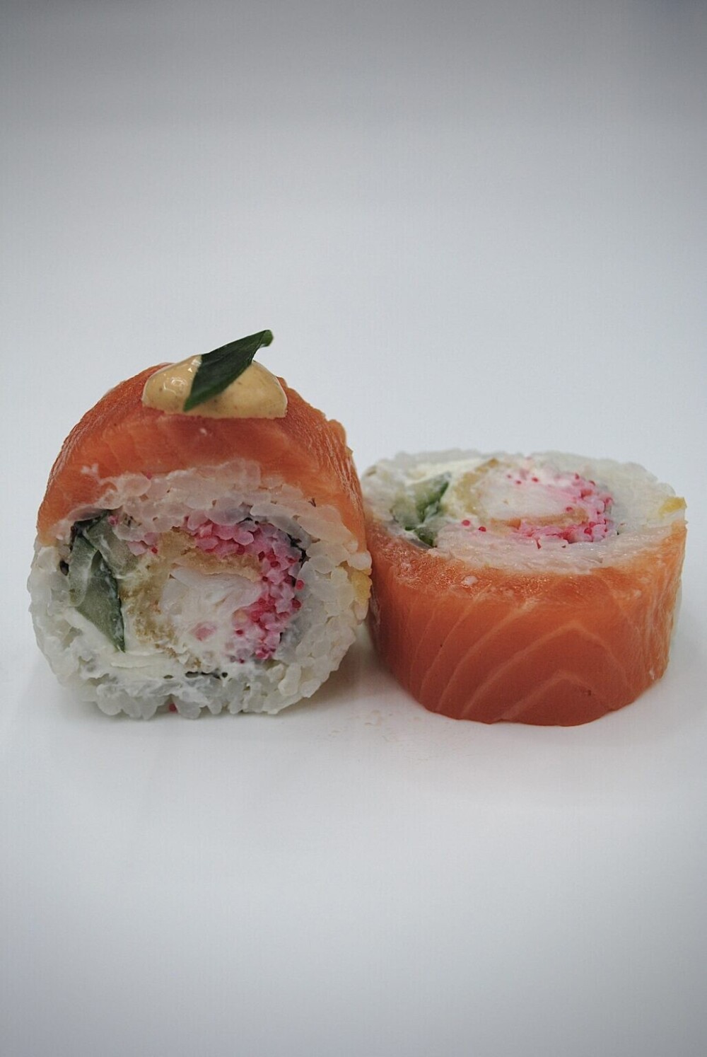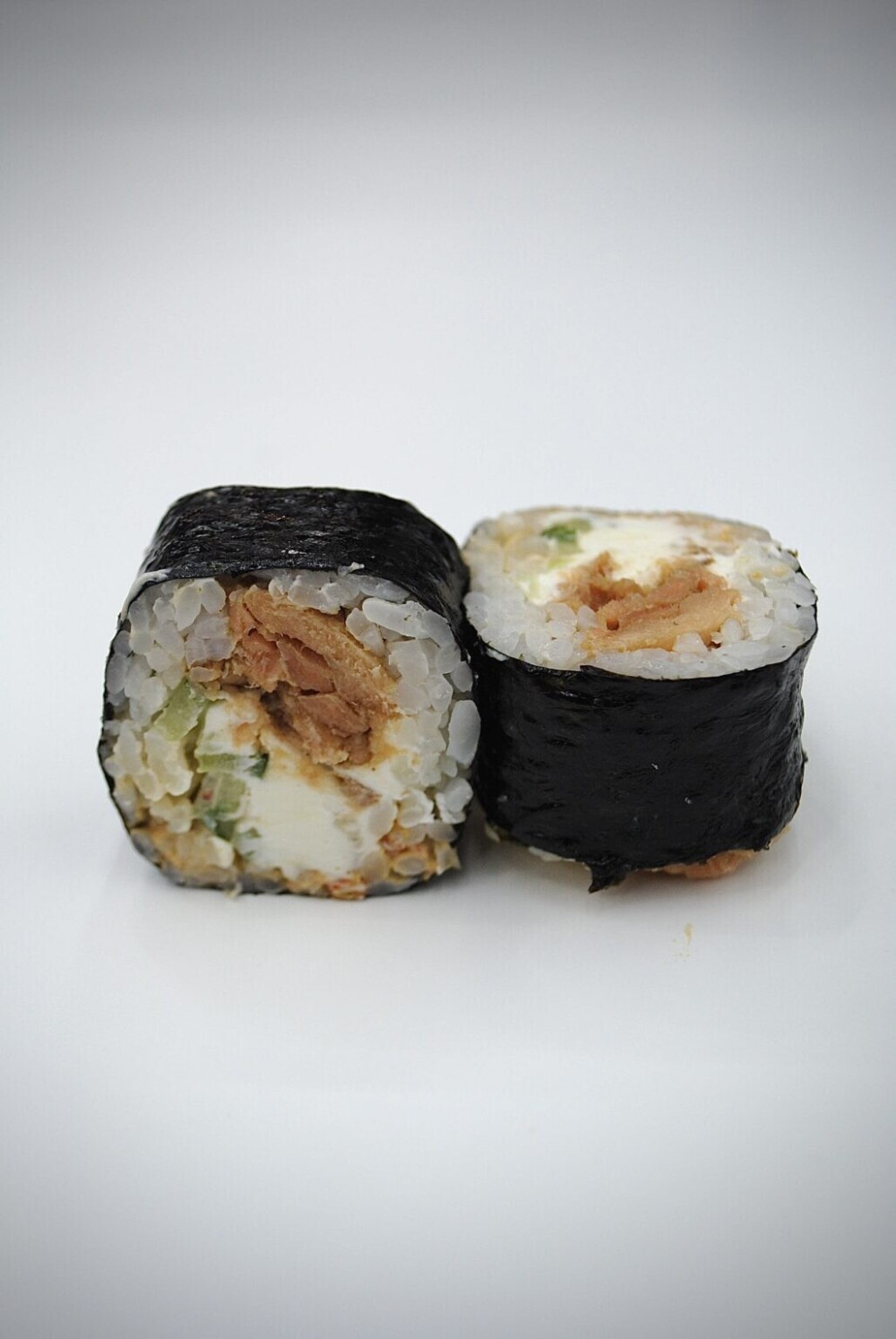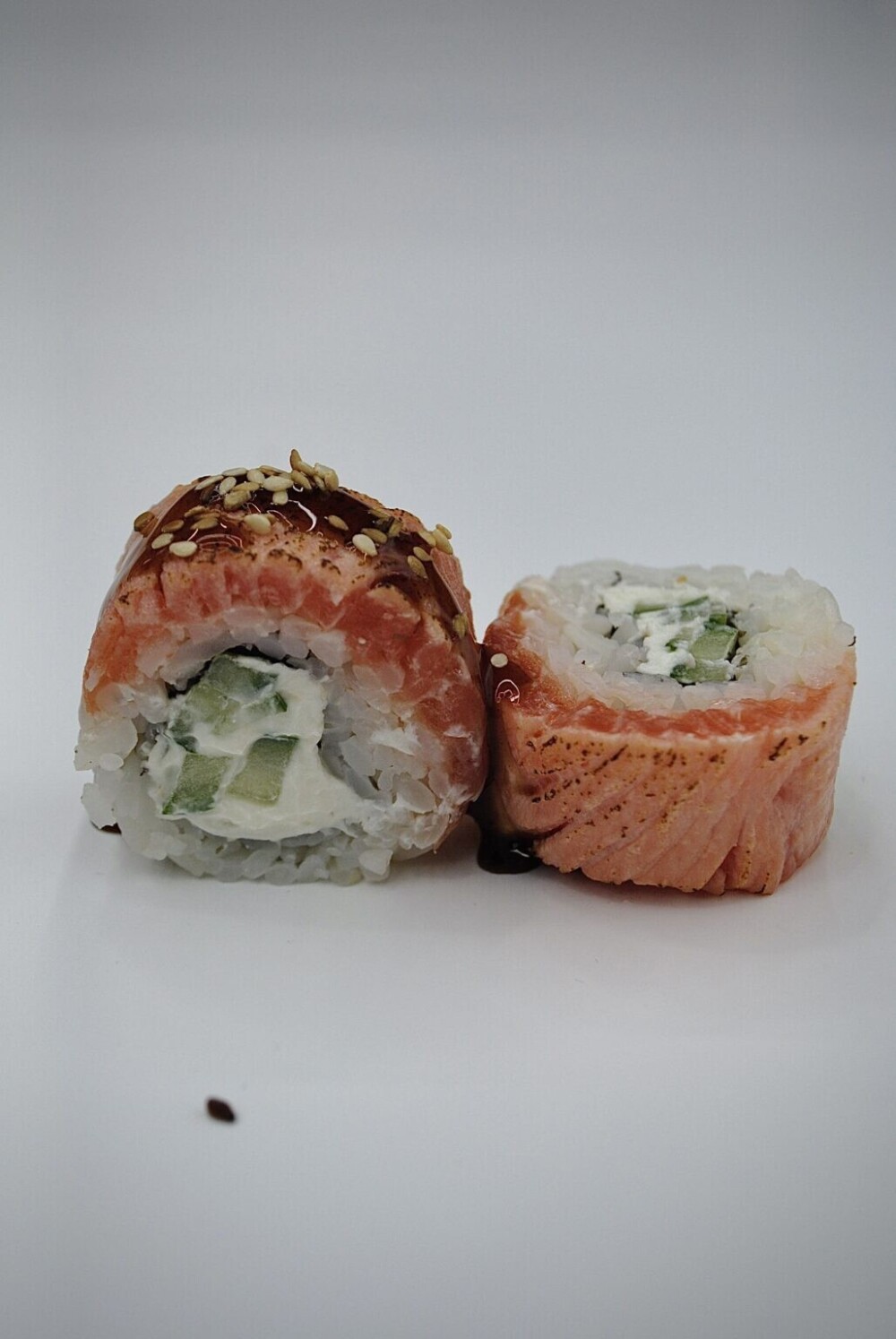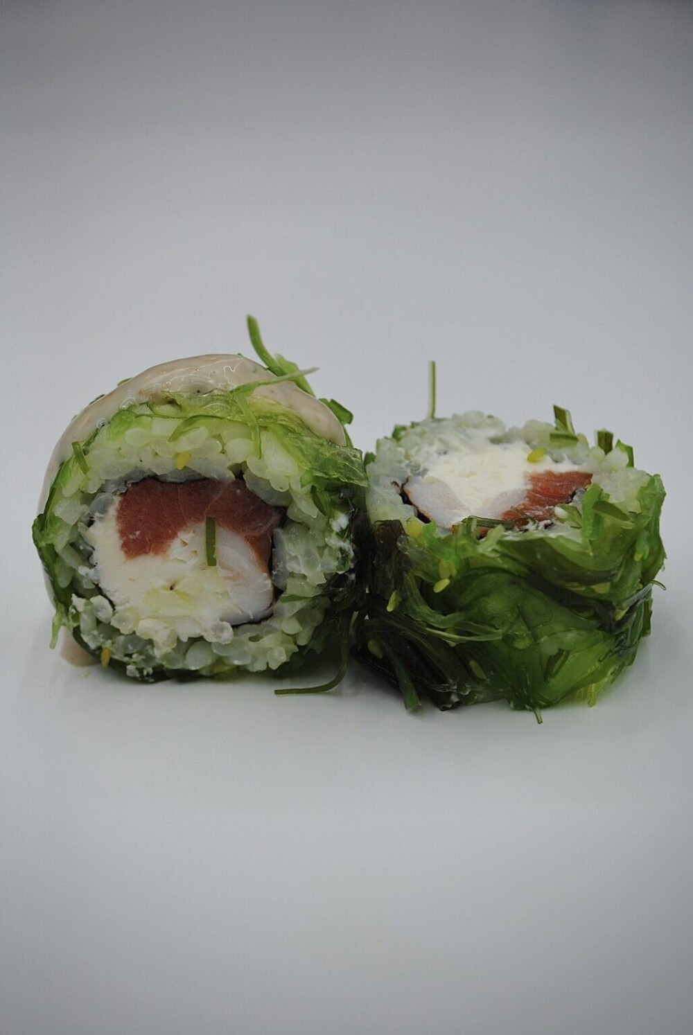 Рис, творожный сыр, огурец свежий, лосось «Терияки» , микс салата, соус «Спайси», соус «Терияки» , лук зеленый