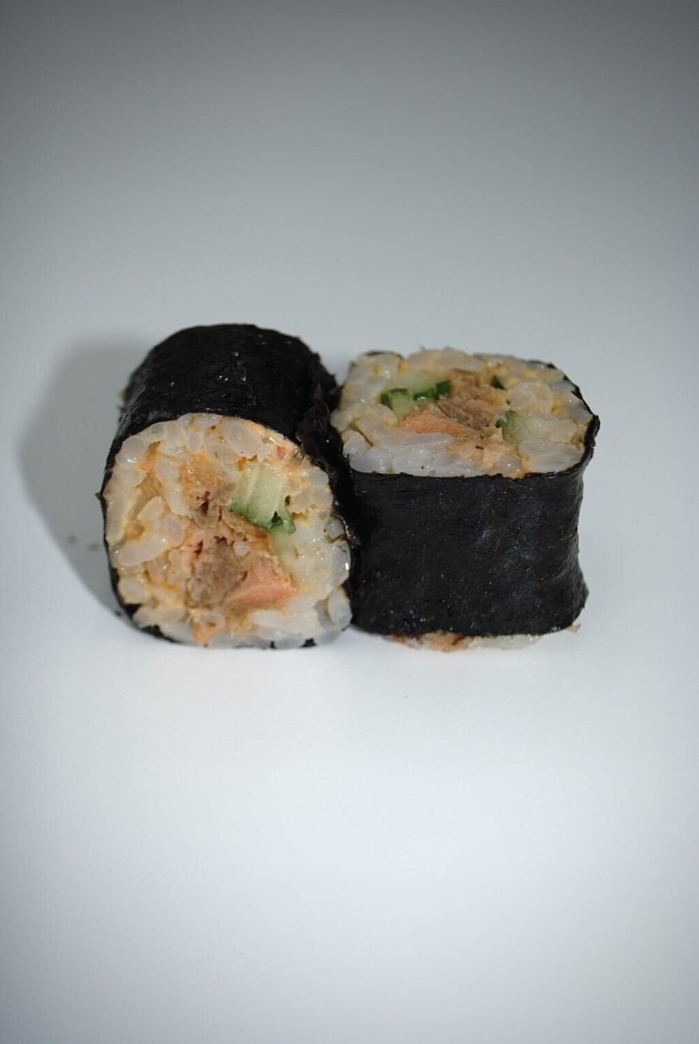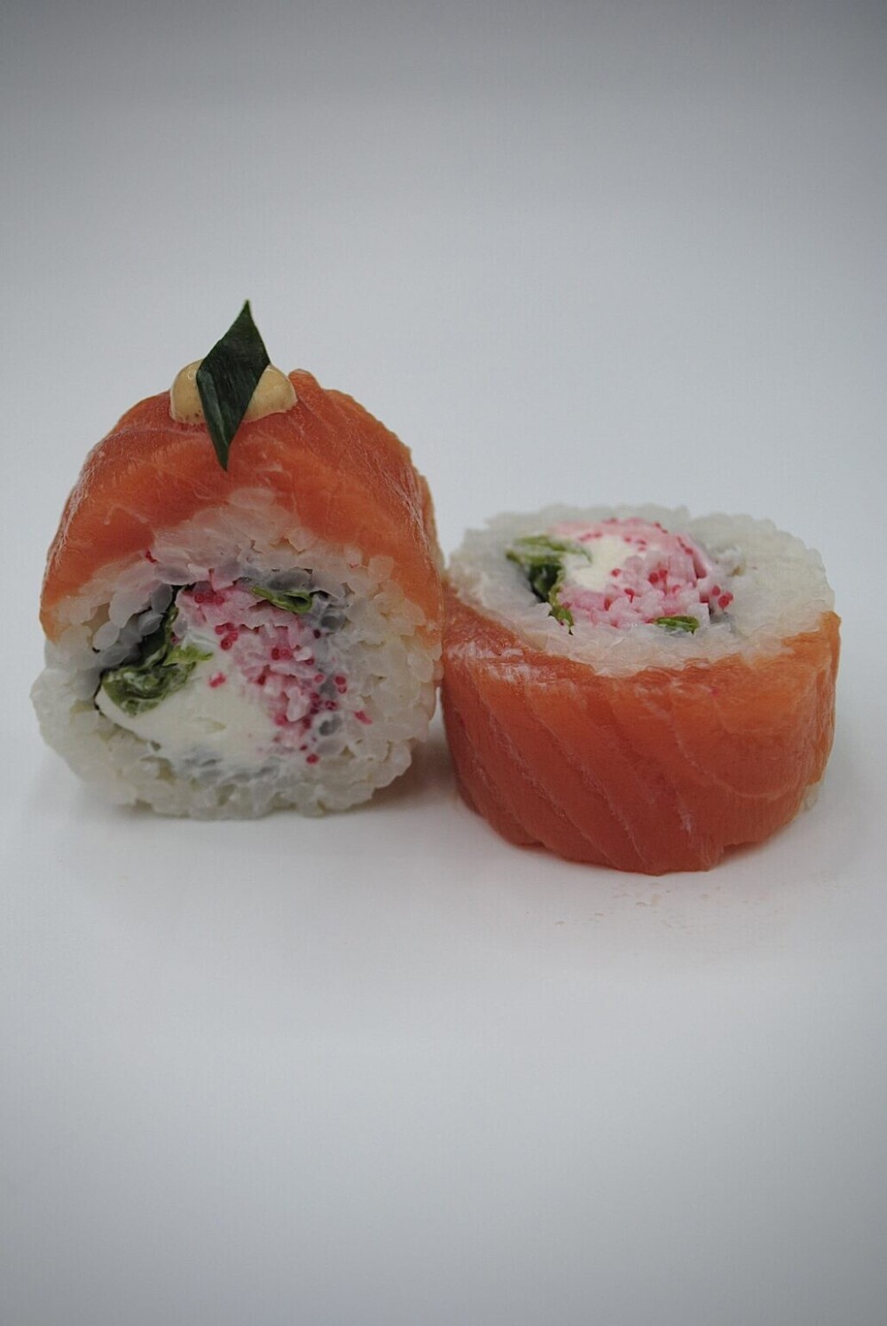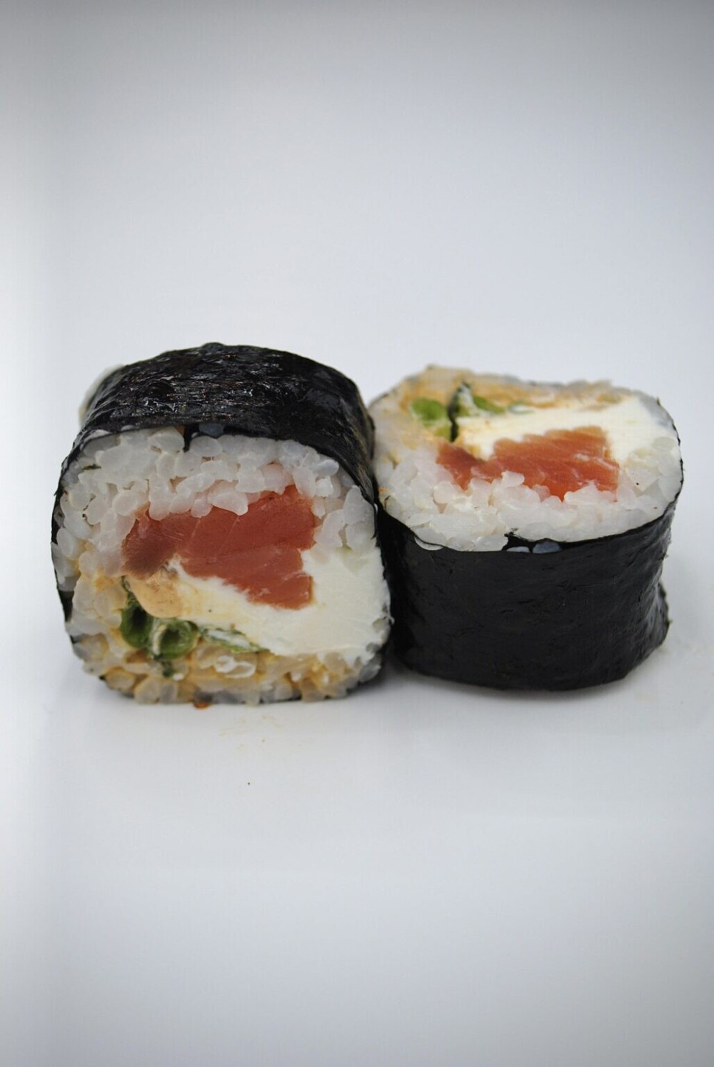 Рис, творожный сыр, огурец свежий, лосось «Терияки» , микс салата, соус «Спайси», соус «Терияки» , лук зеленый
