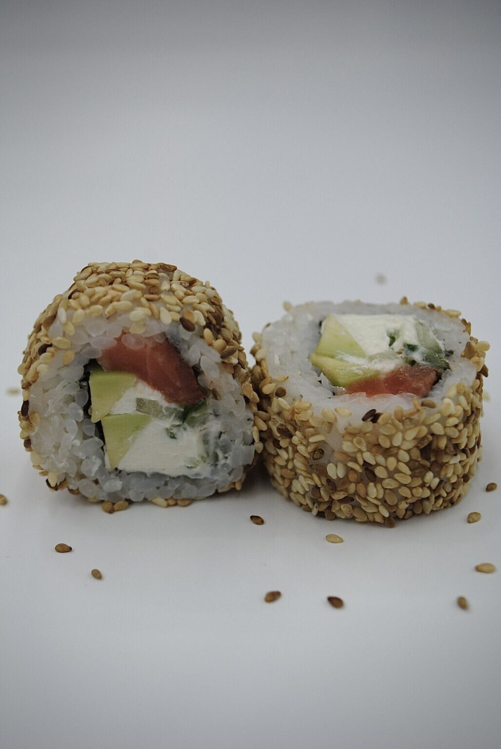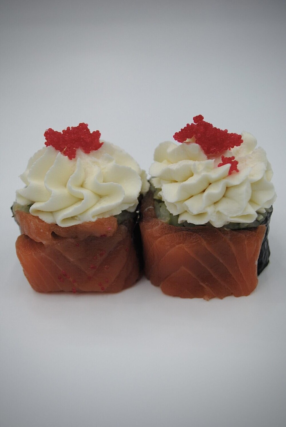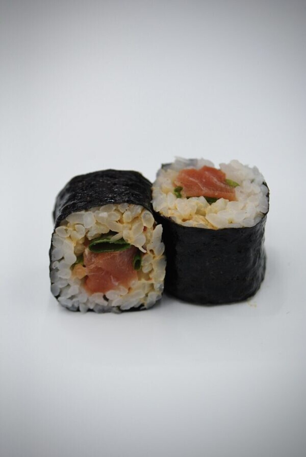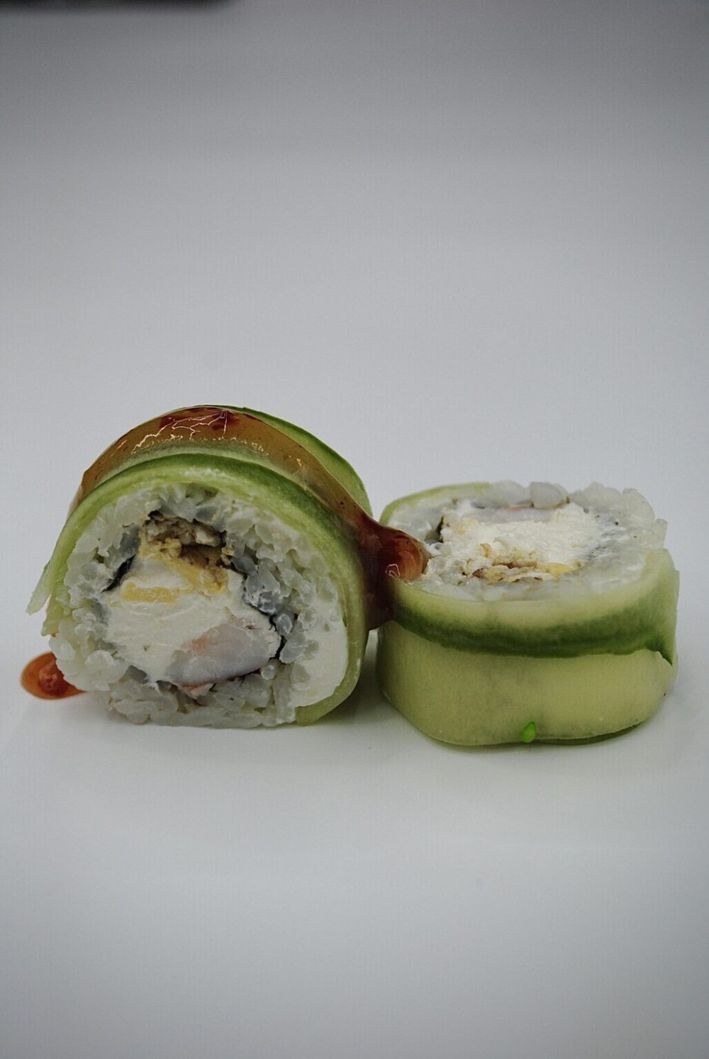 Рис, творожный сыр, огурец свежий, лосось «Терияки» , микс салата, соус «Спайси», соус «Терияки» , лук зеленый