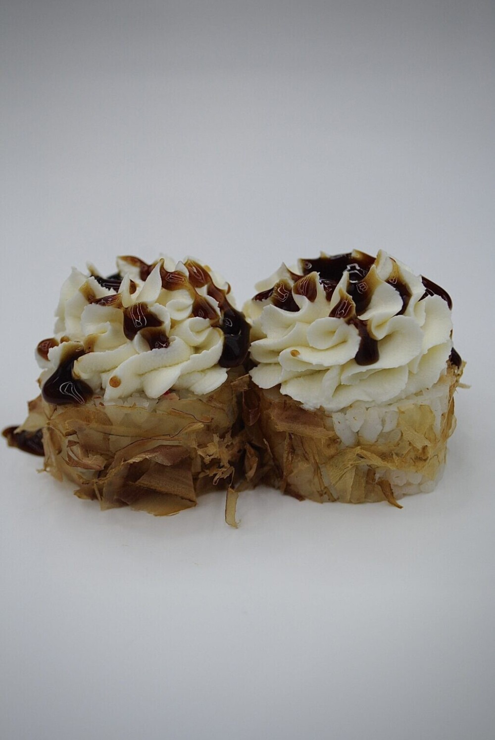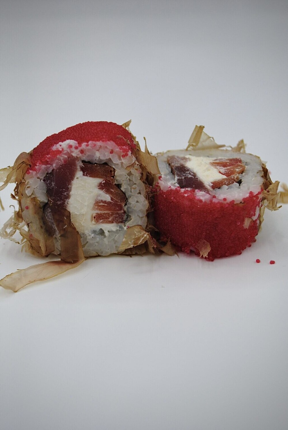 Ролл «Гавайи маки» (Сыр творожный, омлет «Тамаго», креветка «Темпура», огурец свежий, соус «Чили сладкий»), ролл «Юки маки» (Творожный сыр, креветка «Темпура», лосось соленый, огурец свежий, снежный краб, икра тобико, майонез, соус «Спайси» , лук зеленый), ролл «Кисэки маки» (Творожный сыр, авокадо, креветка отварная, соус «Чили сладкий»), ролл «Оригами маки» (Салат «Чука» , «Ореховый» соус, лосось свежий, сыр творожный, икра тобико), ролл «Ясураги маки» (Творожный сыр, тунец свежий, перец сладкий, икра тобико, стружка тунца)