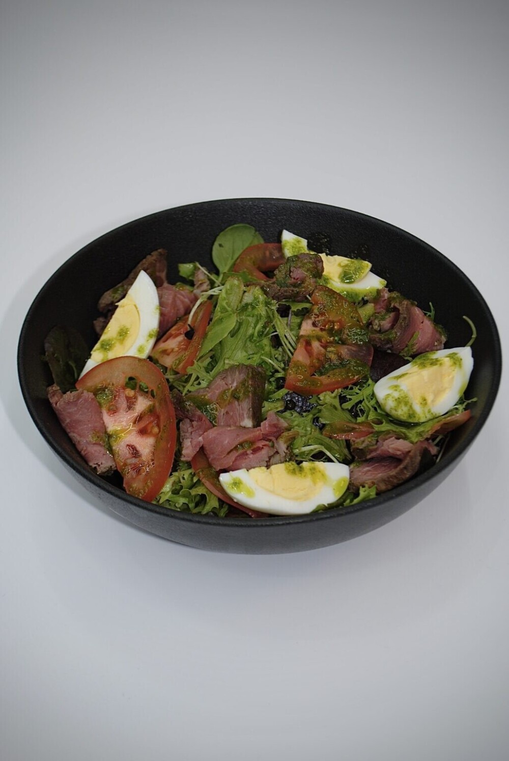 Салатный микс, помидоры, говяжья вырезка «Су-вид» , яйцо отварное, соус «Ореховый»