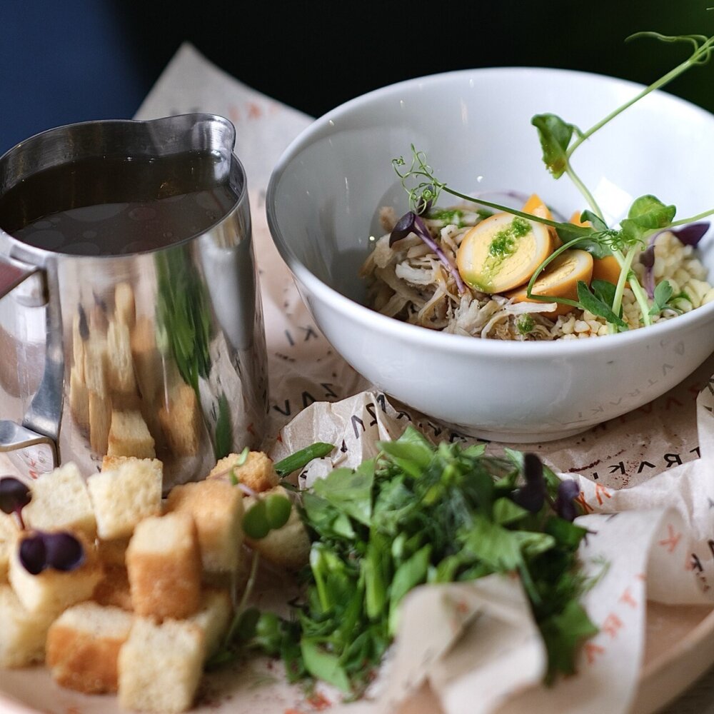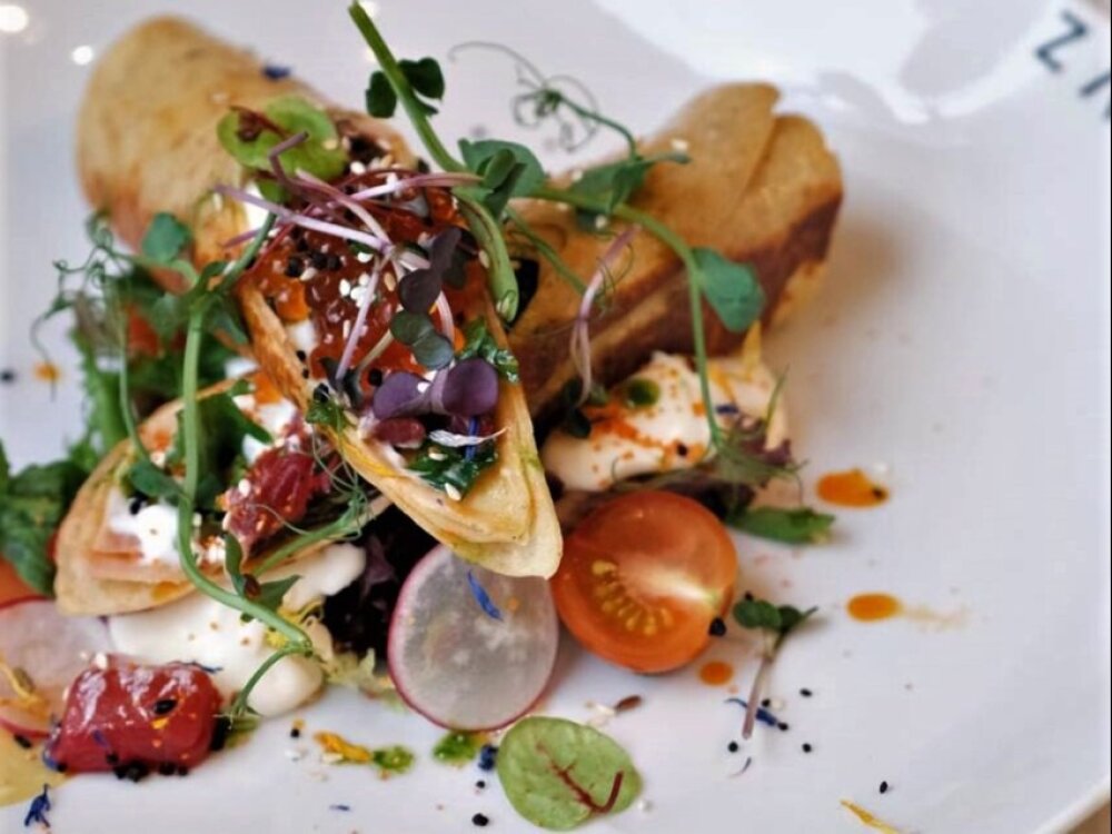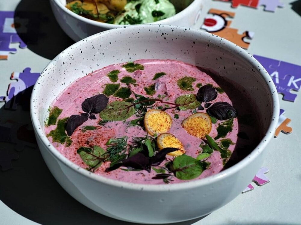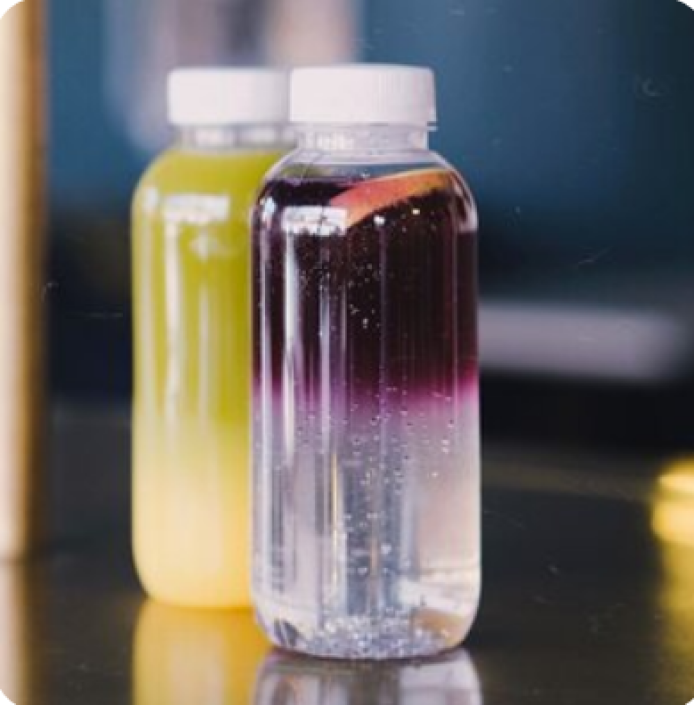 Холодный напиток на основе тоника с добавлением дольки лимона и голубой либо зелёной матчей на выбор. Голубая матча при контакте с лимонной кислотой приобретает фиолетовый оттенок