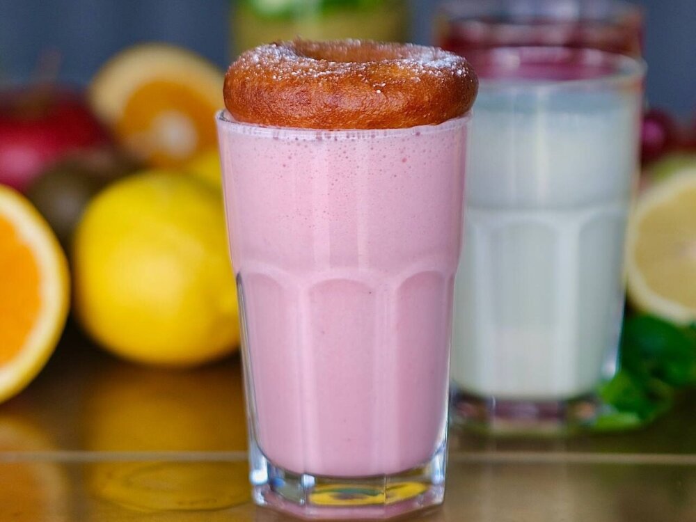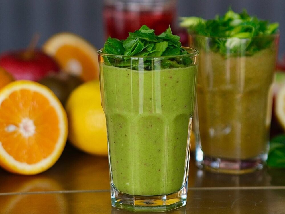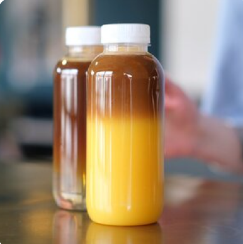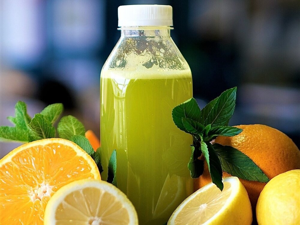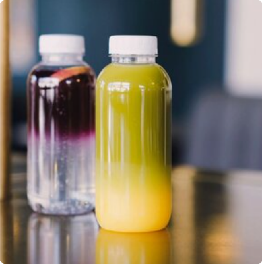 Холодный напиток на основе сока с добавлением голубой либо зелёной матчей на выбор