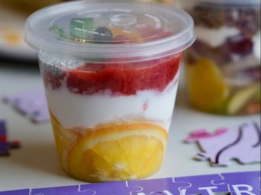 Йогурт с апельсином, семенами чиа и протёртой ягодой