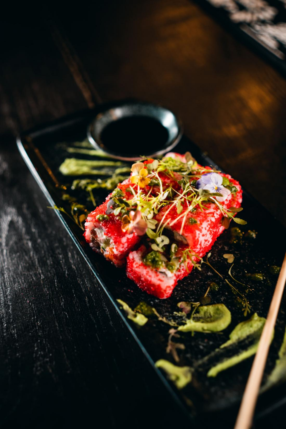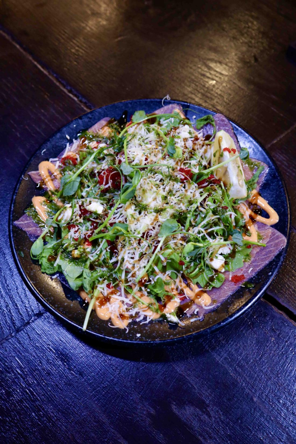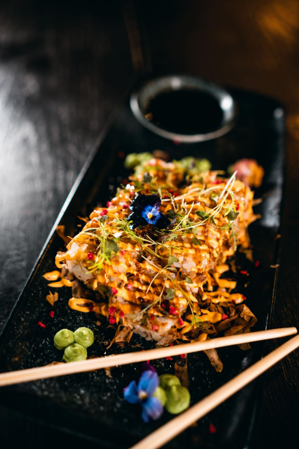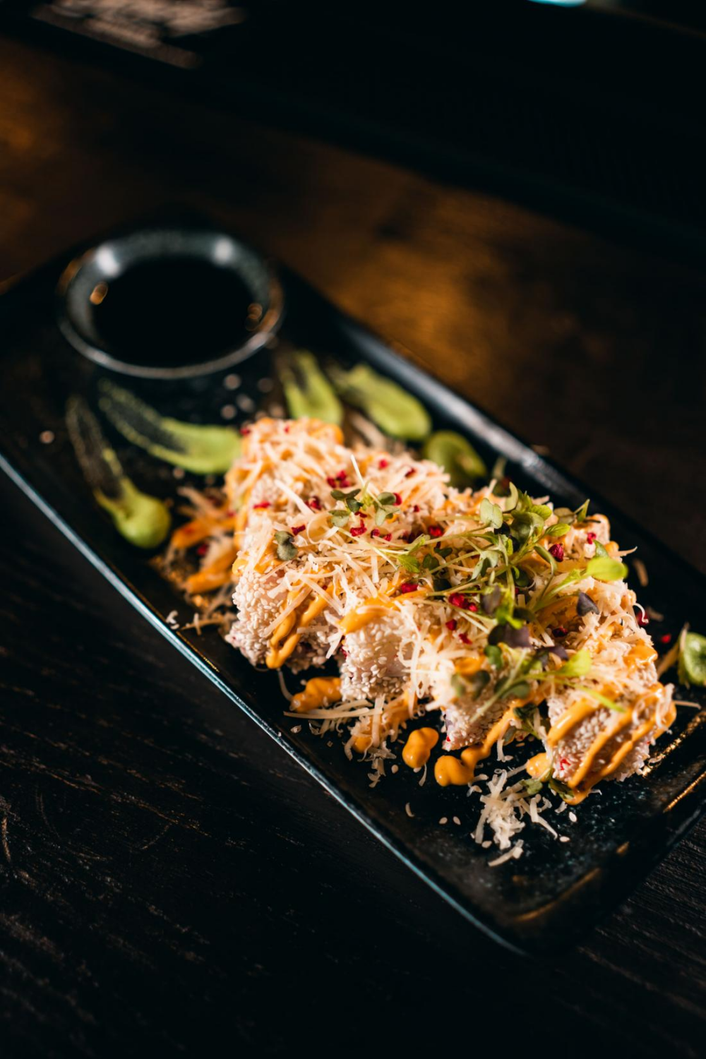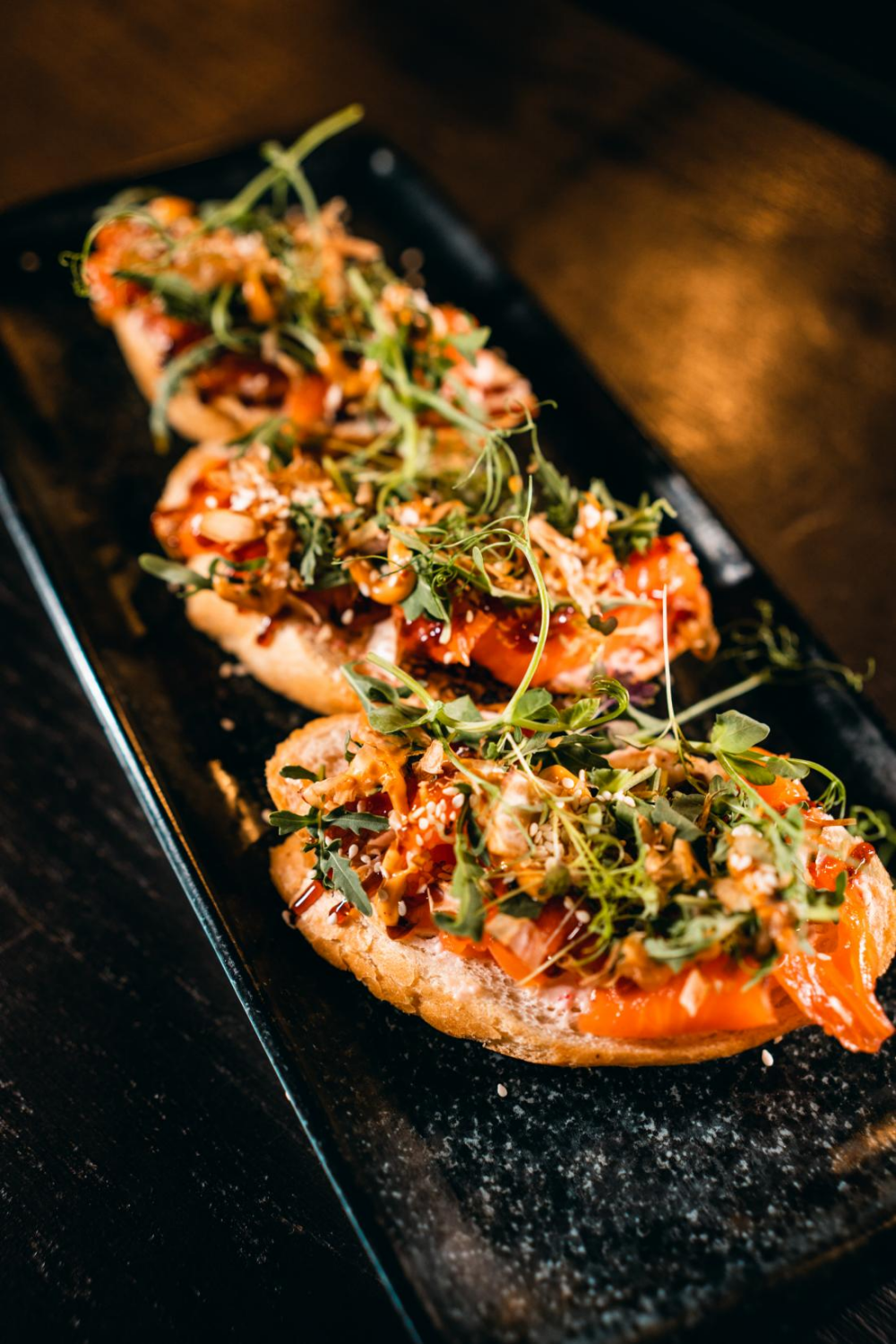 Соус на основе соевого оказался солевым концентратом. Всё, где был этот соус оказалось малосъедобным. Если для Филадельфии и поке это ещё терпимо из-за не критичного соотношения соуса к объёму блюда, то для брускетт это стало фатальным