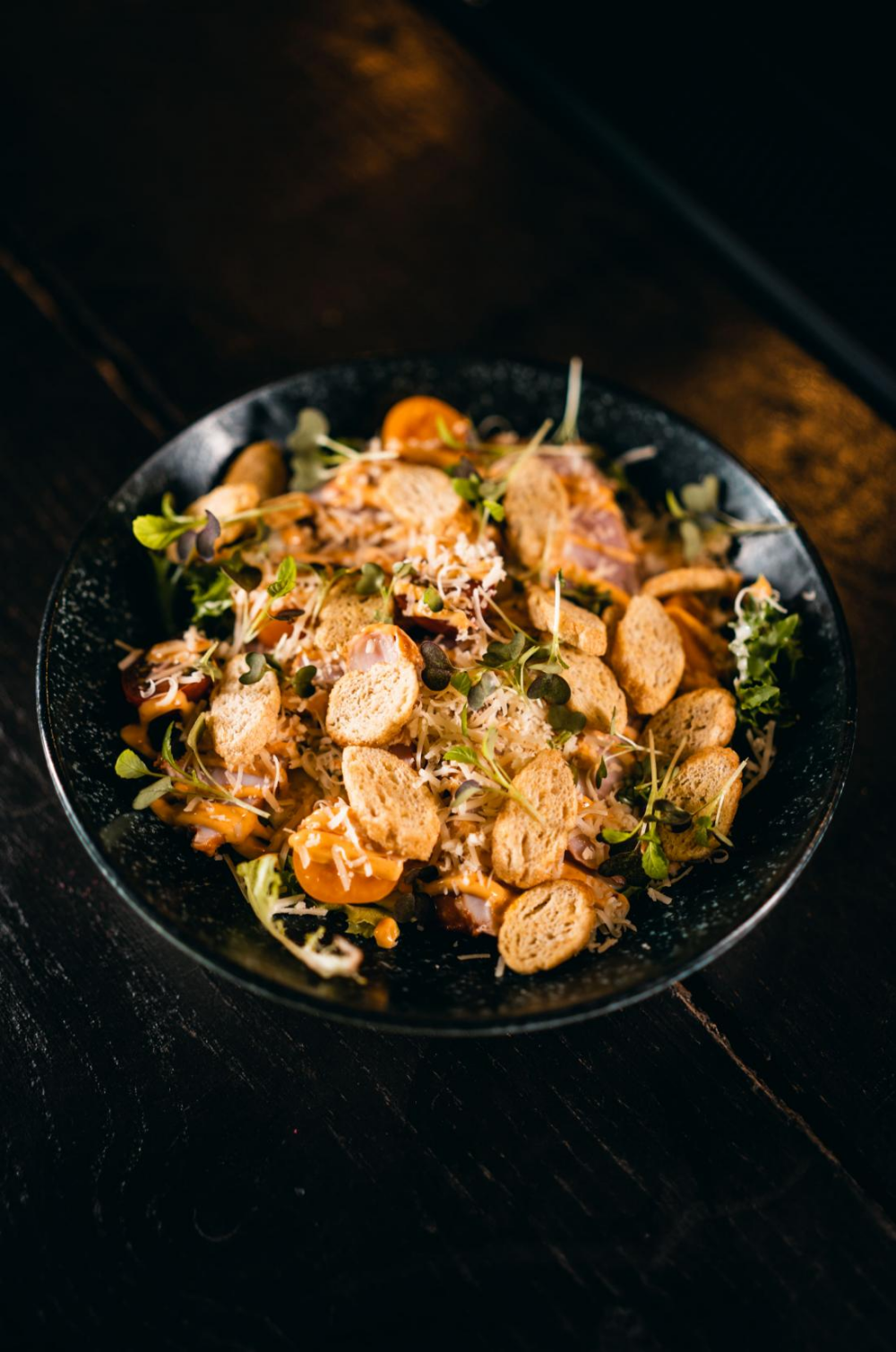 Салат с курицей и сухариками