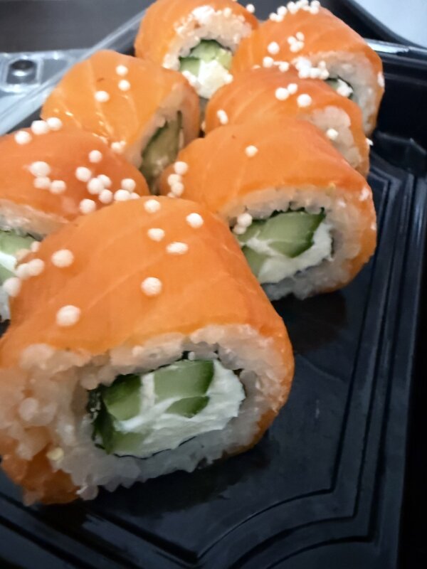 Доставка была быстрой, суши приехали аккуратно упакованными, ещё тёплыми. Роллы выпонены качественно, не развалиались.