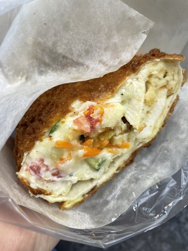 Вкусная , свежие овощи, много соуса, но не течет. Приготовлено аккуратно . Часть грели в микроволновке после нескольких часов, вкус не испортился