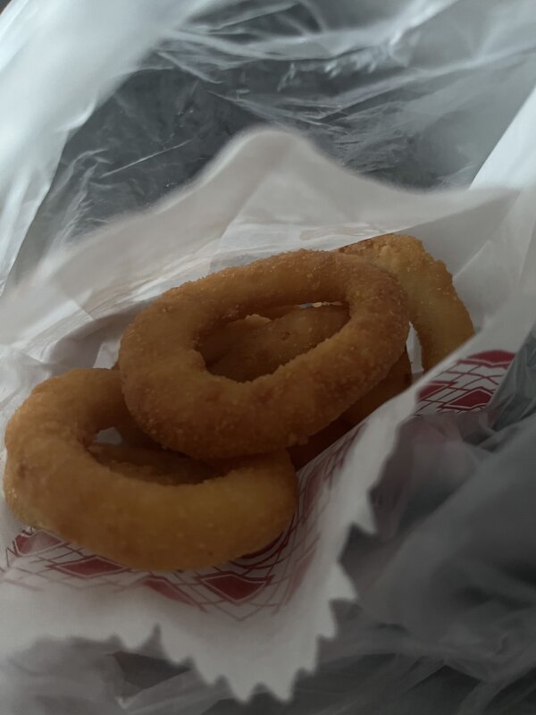 Луковые кольца вкусные, в шаурме очень горчила капуста и мясо сухое.