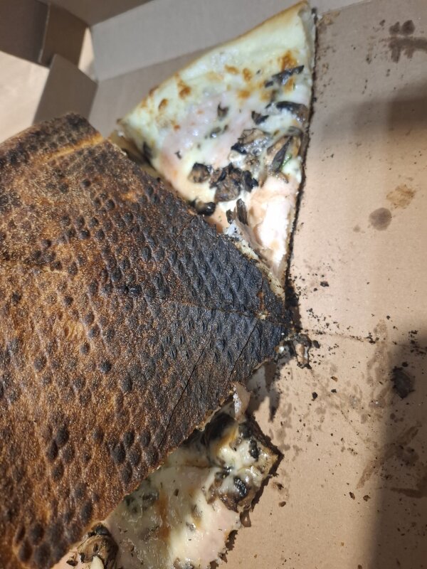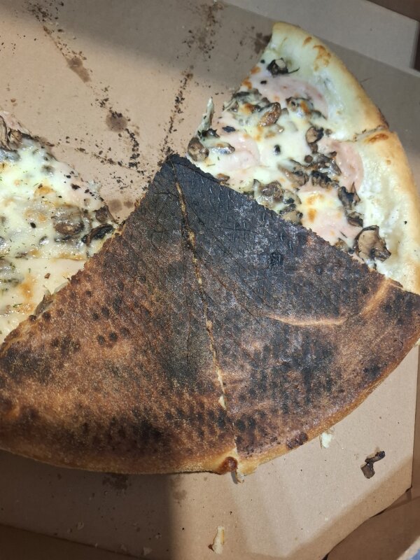 Посмотреть на сгоревшую в хлам пиццу и сказать "да, такое мы можем отправить нашему клиенту" - это заведение "Облако":)