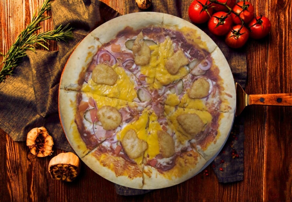 Лаваш ручной работы, в 2 раза больше куриного мяса, свежий огурец(количество увеличено),свежий помидор(количество увеличено), капуста, авторский соус.сырный соус,сыр (количество увеличено)