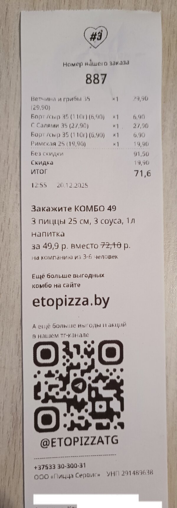 С уважением, администрация заведения «Этопицца Солигорск»!