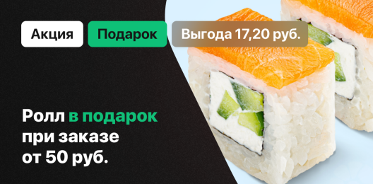 Ролл «Чуколосось», ролл «Краб темпура», ролл «Сочный краб терияки», ролл «Лосось спайс»