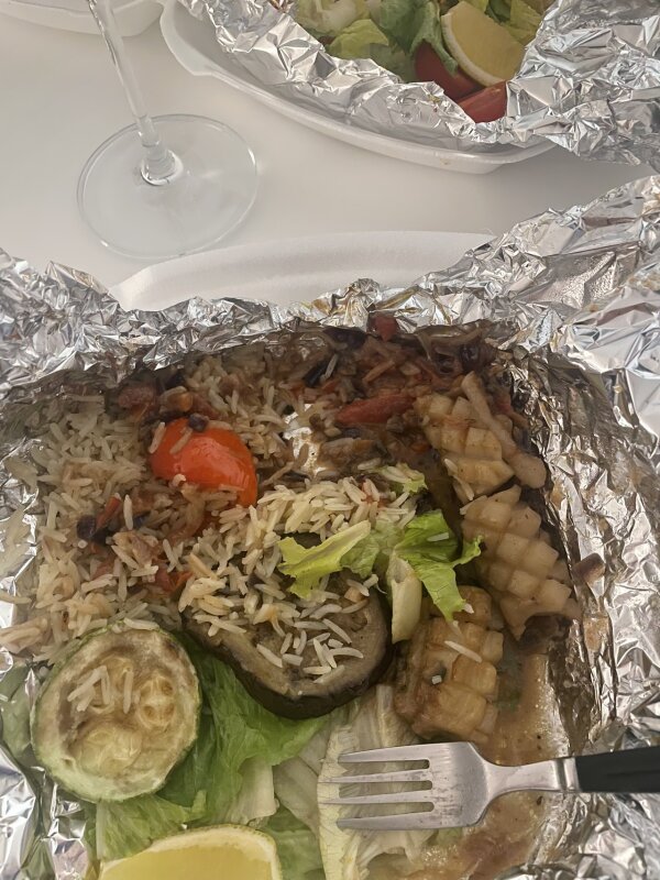 Заказывали доставку два раза. В первый раз все так понравилось, что сомнений не было никаких, тем более, что очень хотелось попробовать блюдо «кальмары в белом вине с рисом и печеными овощами». Но, к сожалению, ожидания не оправдались от слова совсем: кальмары были резиновые и безвкусные.