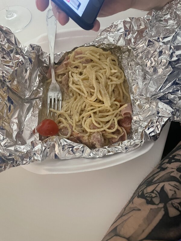 Карбонара и тигровые креветки со сладким чили и фисташками очень вкусные- за это 10 из 10.