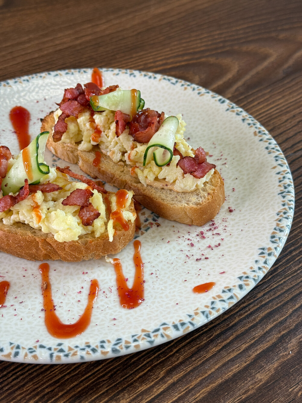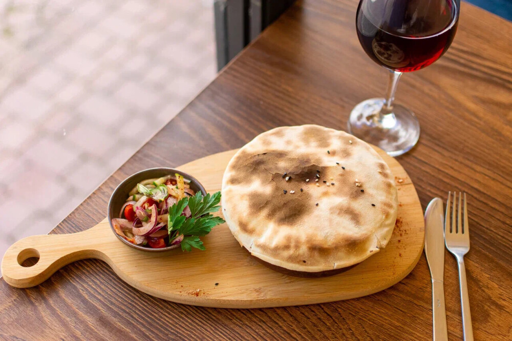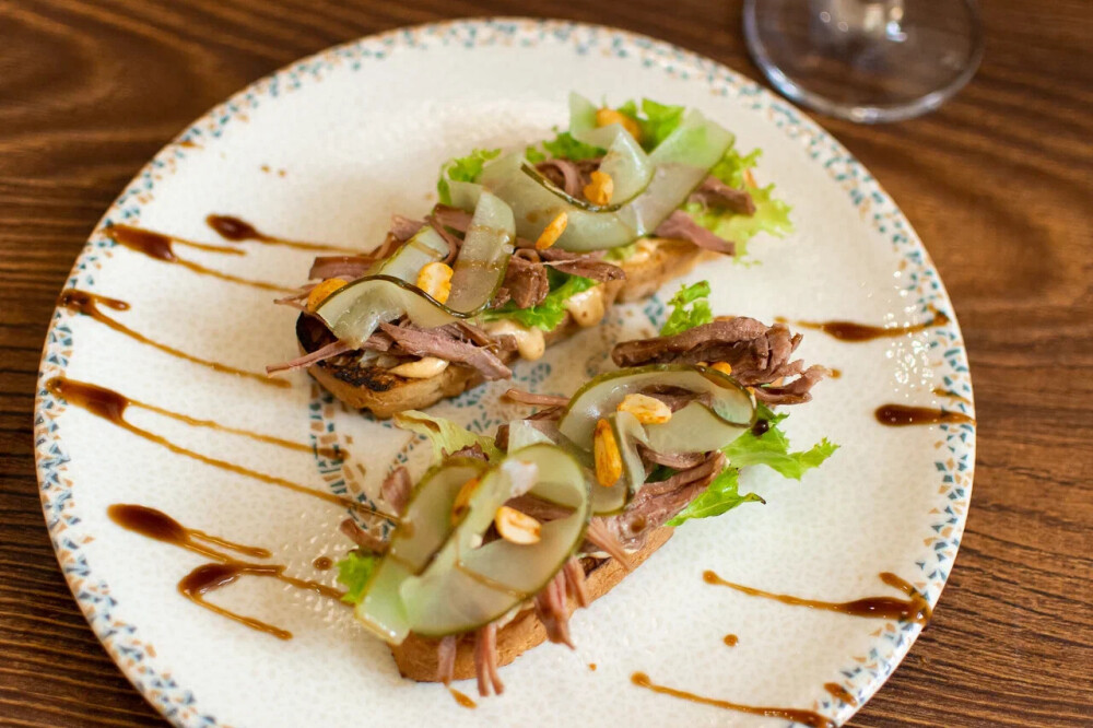 Брускетта с томленой говядиной и арахисом «Кимчи»