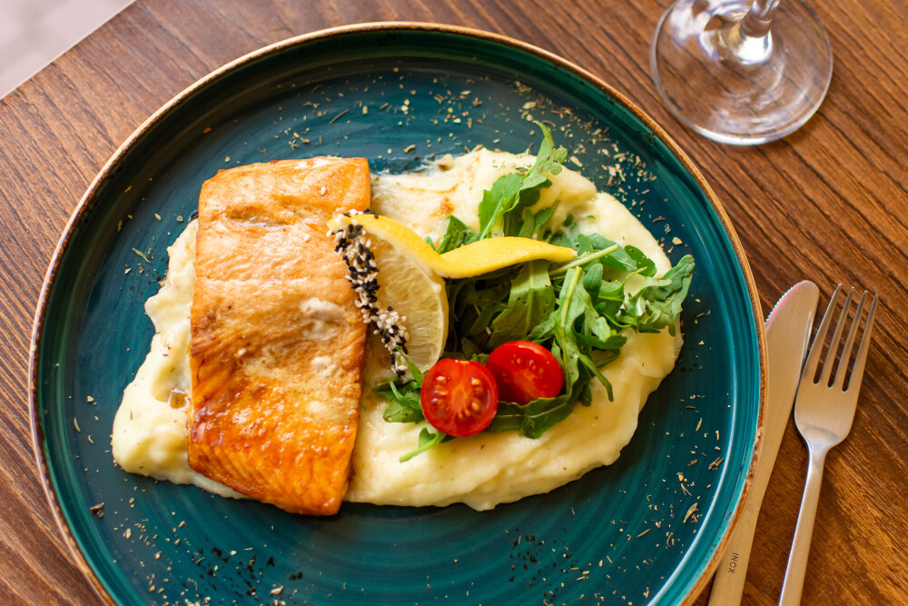 Салат «Цезарь» с лососем и перепелиным яйцом