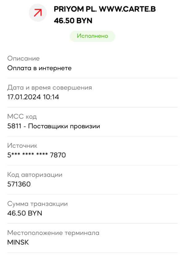 Очень понравилась кухня, респект повару! Спасибо, 100 обедов и carte.by🤗