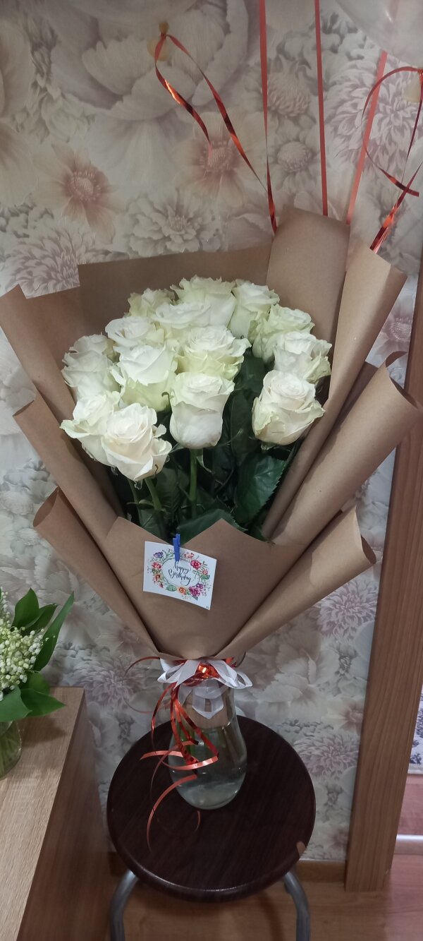 Доставку заказываю относительно часто, в том числе и в этой студии цветов. Обычно всегда связывался флорист и сообщал, что есть по наличию, уточняла нюансы доставки. В этот раз, просто списали деньги и тишина. По факту доставили розы не соответствующие тому, что выбрано было на сайте. Я понимаю, что их могло не быть в наличии, но в таком (в любом) случае со мной должен был связаться магазин и сообщить данный факт! Совершенно разные розы, разный сорт, разный цвет! О их свежести сложно сказать, по фото не Понятно (уточнять у именинницы свежие ли цветы, как то не очень). Категорично не довольна доставкой данного букета. Сервис нулевой. Я сама звонила в цветочный, уточняла, уехали ли мои цветы, все ли в порядке? О клиентоориентированности видимо не слышала там...самое главное, что тогда ещё не знала, что доставили совершенно другие цветы.