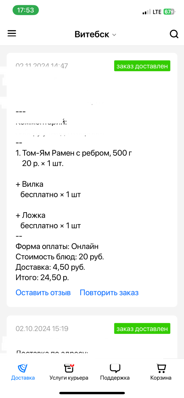 Оформление заказа быстрое, удобное, курьеры вежливые, еда доставляется в лучшем виде