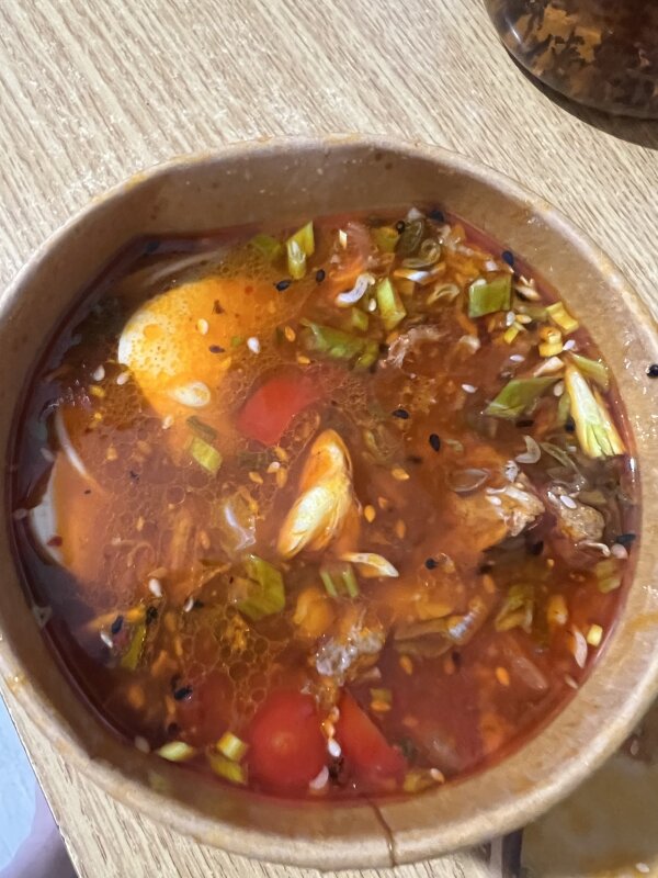 Доставили быстро. Курьер вежливый. Но суп с большой натяжкой на троечку. Грибы с луком, видимо, жарят в большом кол-ве масла, даже на вид не очень(( кокосового молока недостаточно.