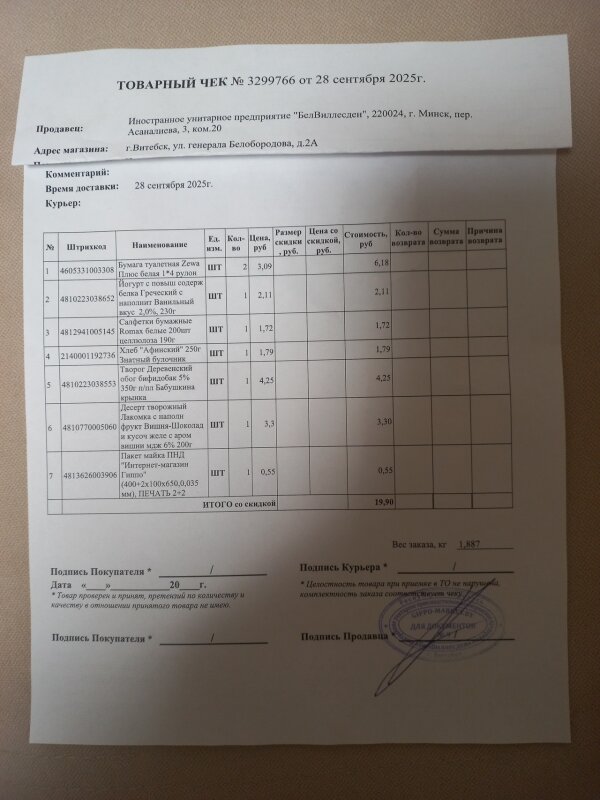 Я потратила кучу времени,чтобы сформировать свой заказ на сайте магазина. Доставка по итогу моего выбора была 99 копеек и в списке все нужные мне продукты. Но оказалось,что половины продуктов нет в реальности! Непонятно почему они "висят" на сайте. Кое-что заменили,кое-что убрали. В итоге я получила половину не того,что хотела. Доставка стала платной 5 руб. Замороженные продукты приехали полностью растаявшими. Сервис не понравился. Больше не буду заказывать.